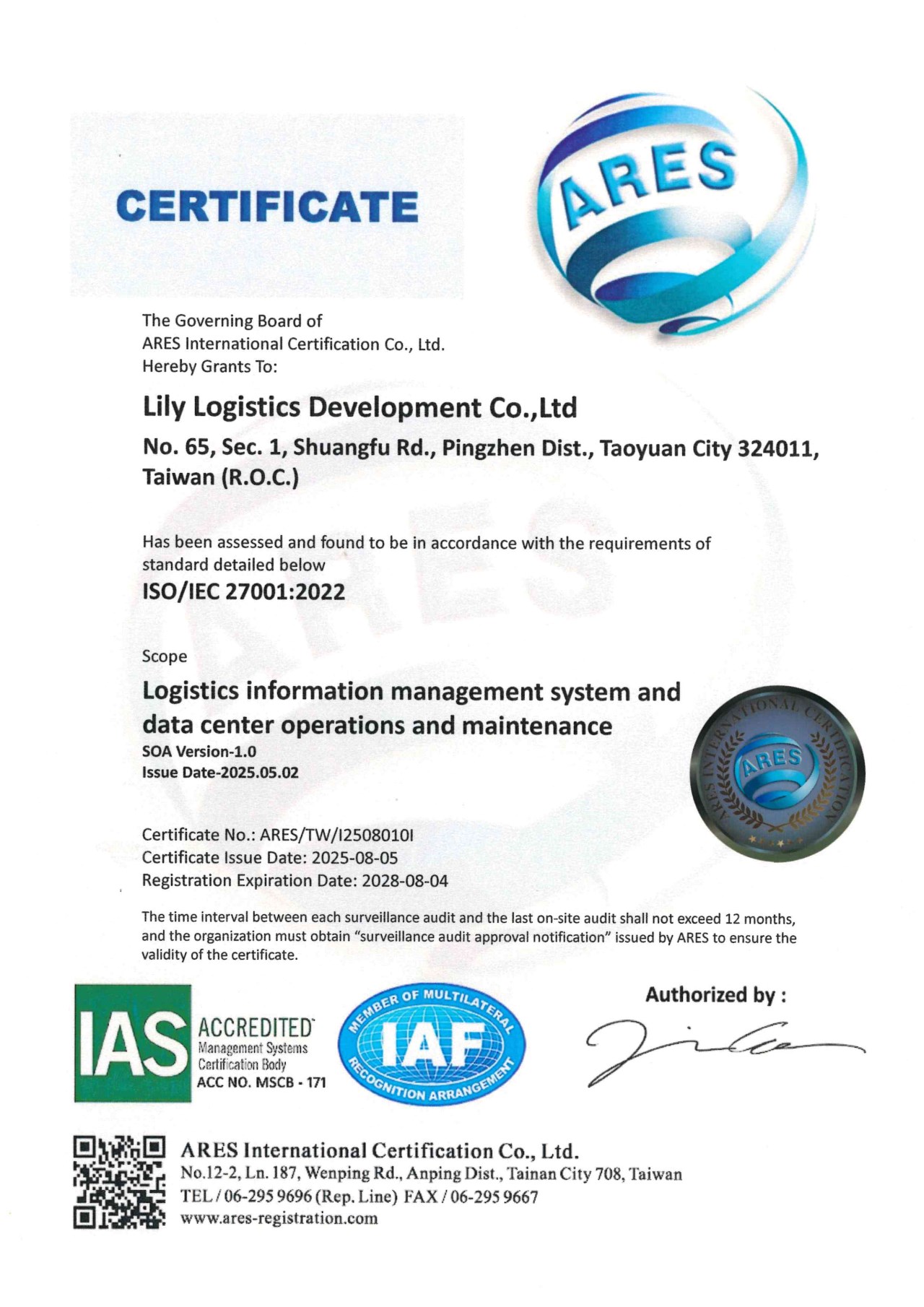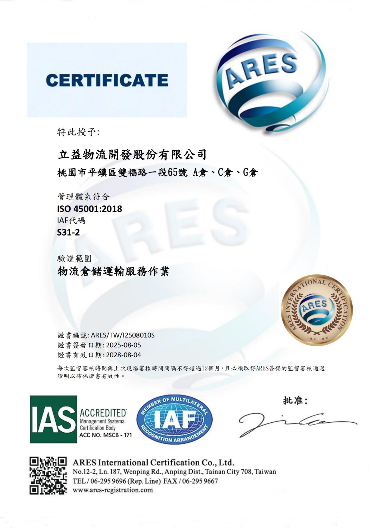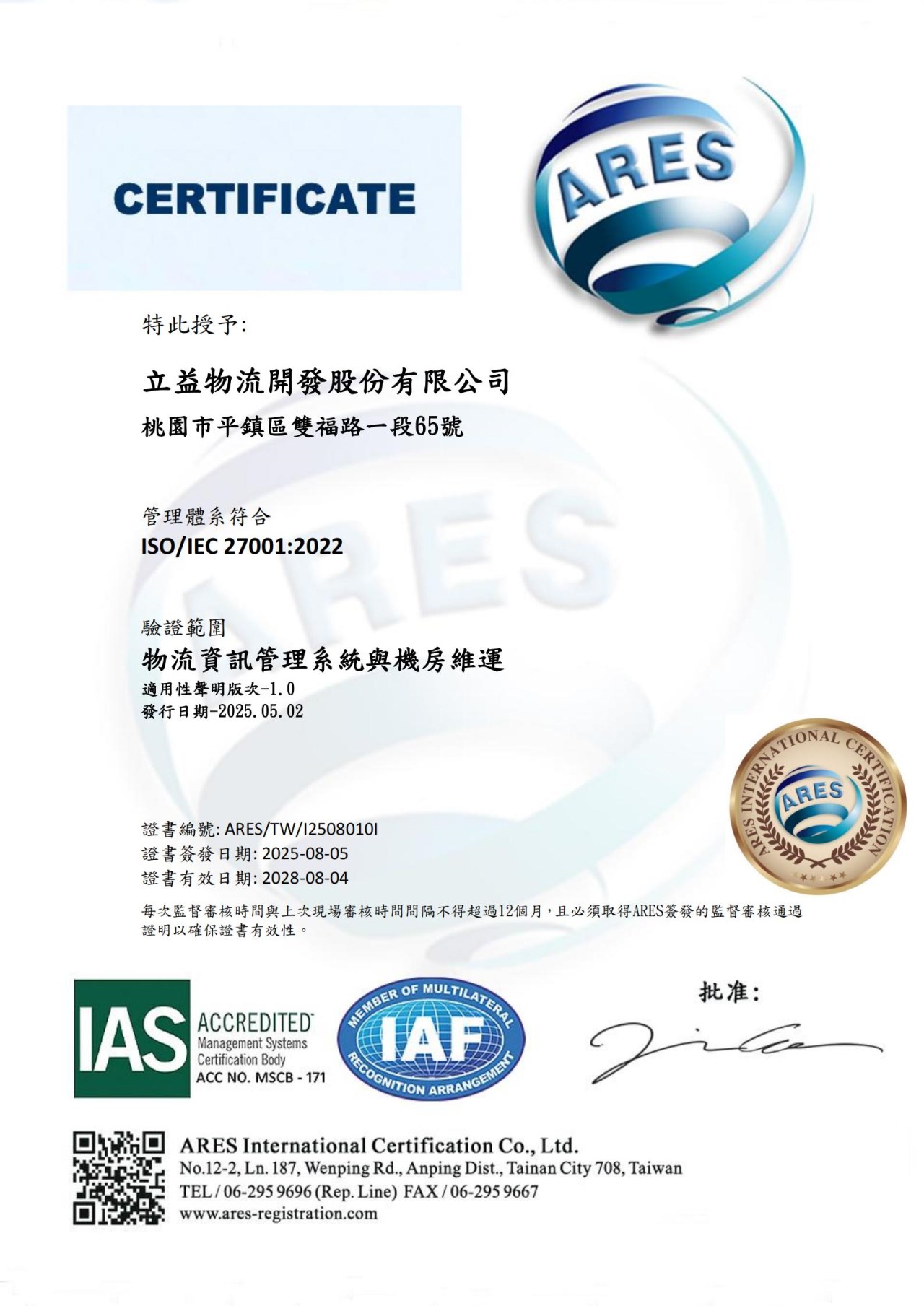 立益物流開發股份有限公司 -通過4項ISO 認證